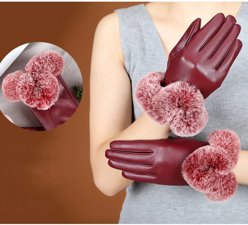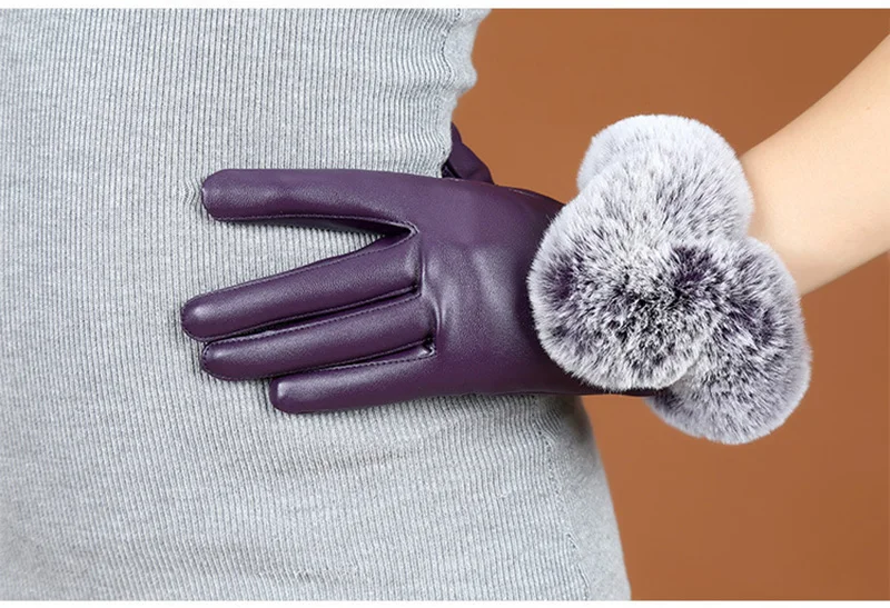 Welcome to our shop, we are a manufacturer, producing all kinds of gloves Many styles, sufficient inventory, fast delivery time. All kinds of customers are welcome to enter the store to buy.Rex rabbit wool mouth sheepskin warm gloves autumn and winter women's Korean version touch screen gloves cute ladies glovesDue to Handmesure, It may have 1-3cm difference. Different Monitor or Environment Light will cause color differenceFashion Warm PU Leather Gloves Women Thick Winter Mittens Touch Screen Luxury Faux Fur Gants Female Leather Fur Luvas SkiingType: Elegant Leather GlovesMaterial: PU LeatherColor: Black, Red, PurpleSize: One SizeOccasion: Outdoor, Office, Skiing, Driving, Writing,etc…Gender: WomenSeason: Winter, AutumnFunction: Touch Screen, Warmer, Windproof, GiftWelcome to our shop again, thank you for your purchase!Warm Tip:1. Wholesale and Drop Shipping are both welcome.2. Due to Stock Status And Time Differences, Sometimes May Not Reply So quickly,Wish You can understand, We Will reply as soon as we can.